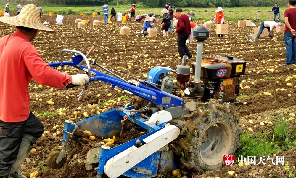 一农友正用机子耕收马铃薯。(摄影:赵必强)