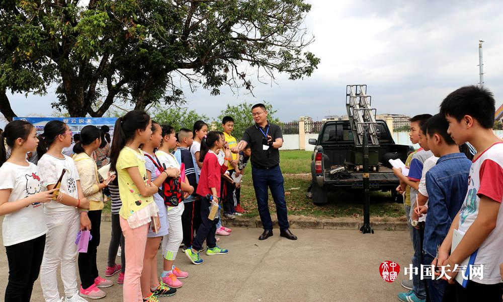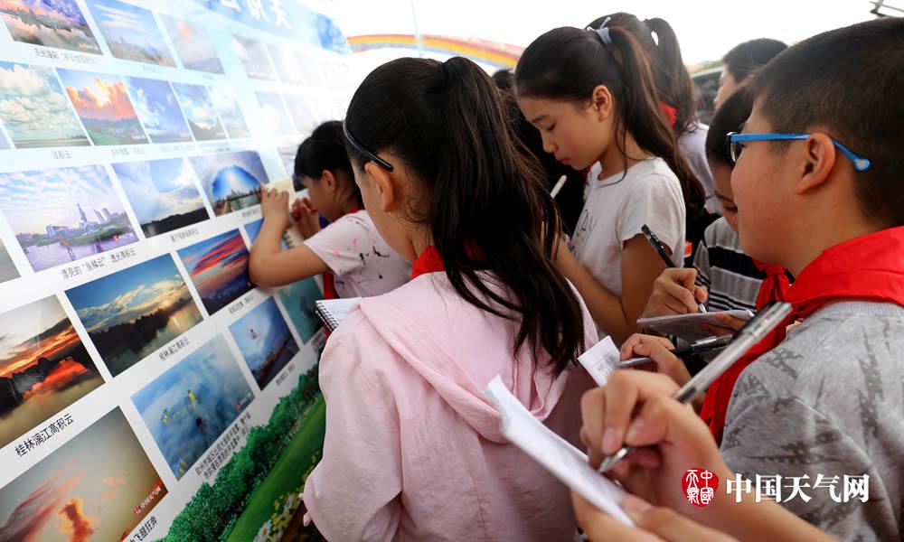 孩子们对雨量筒很是好奇(摄影:毛卫芳)