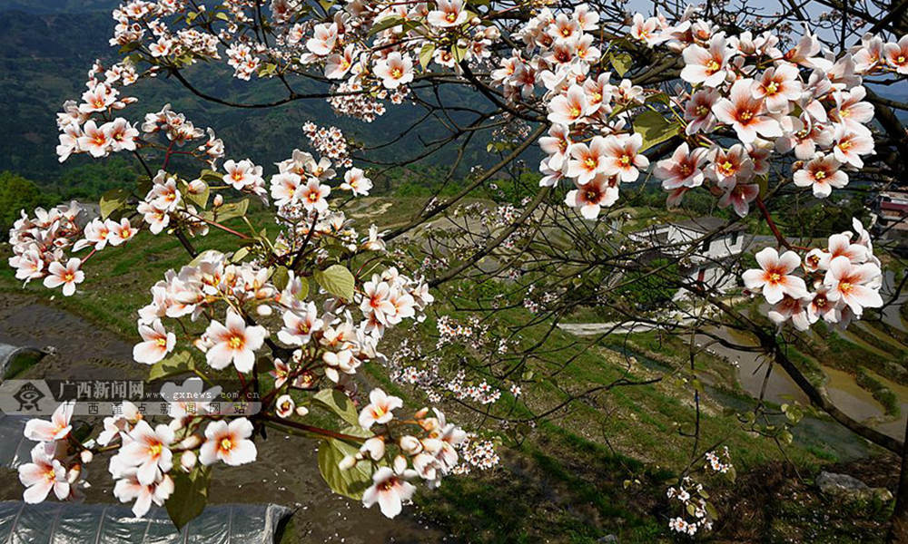 梯田里的油桐花楚楚动。(摄影:韦仕尤)