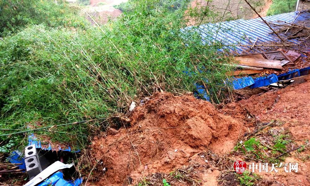 竹林倒塌压倒坡底的临时房(摄影:叶品玲)