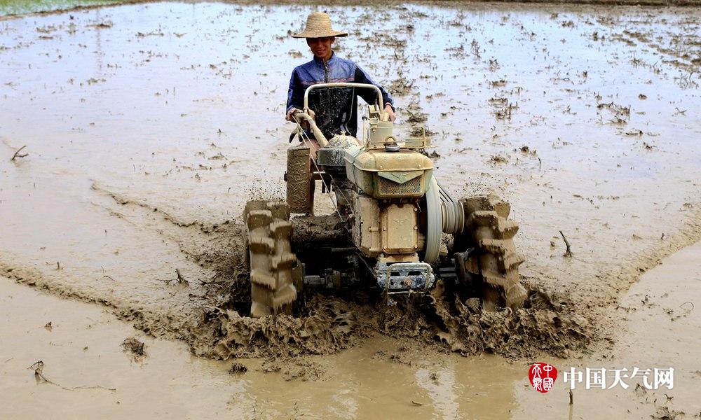 轰隆隆的犁田机正在工作(摄影:王春娟)