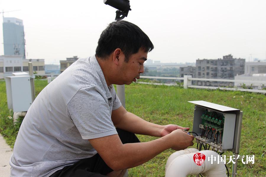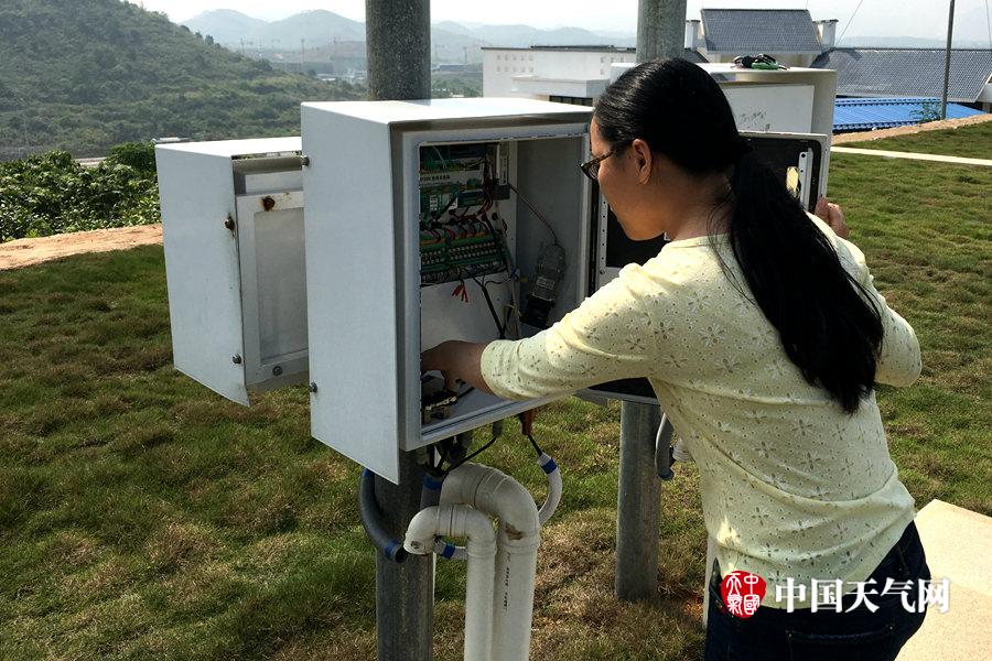 崇左:值班人员在维护气象仪器(摄影:潘春江)