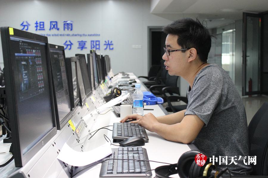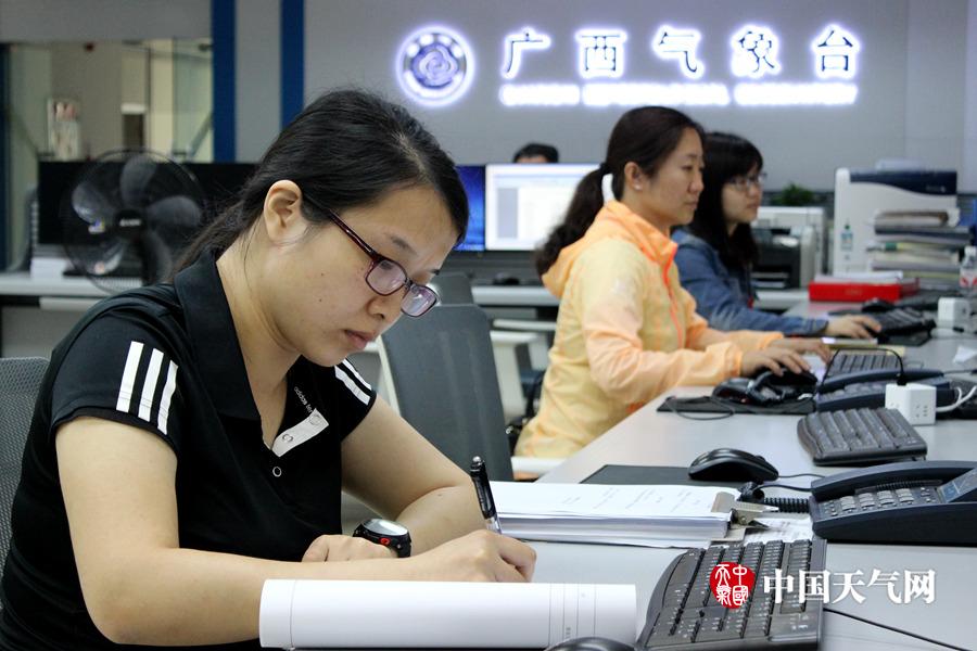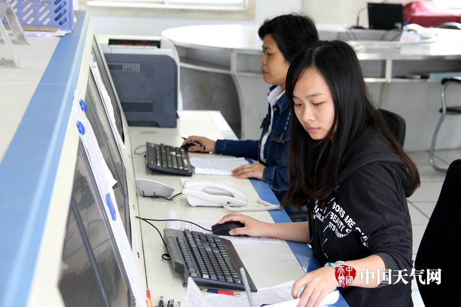 贺州气象台工作人员在值班(摄影:韦小雪)