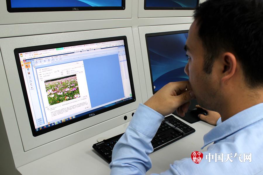 广西天气网的网站编辑正在编辑稿件(摄影:周玉)