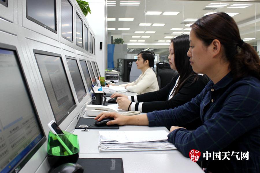 区气象服务中心信息发布区:想要了解与天气相关的资讯就是打电话给这些美女哦(摄影:周玉)