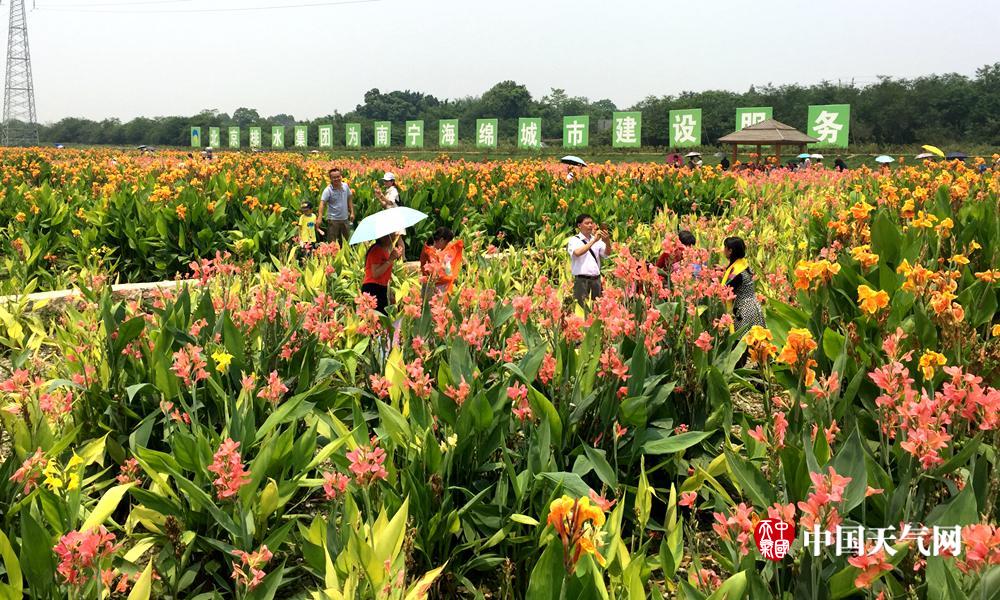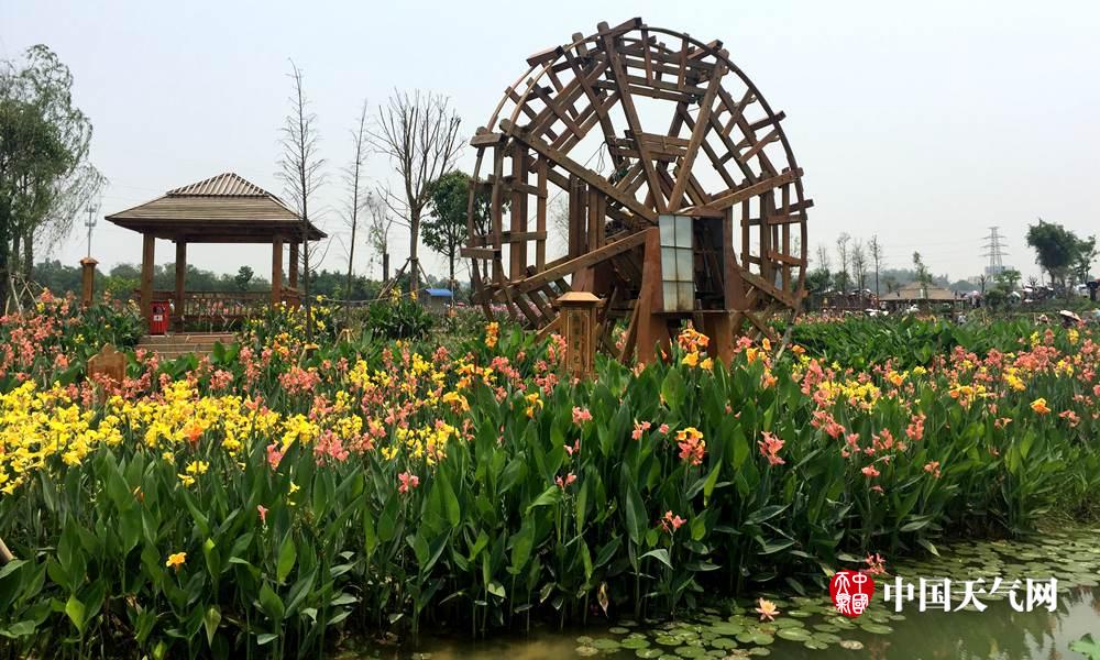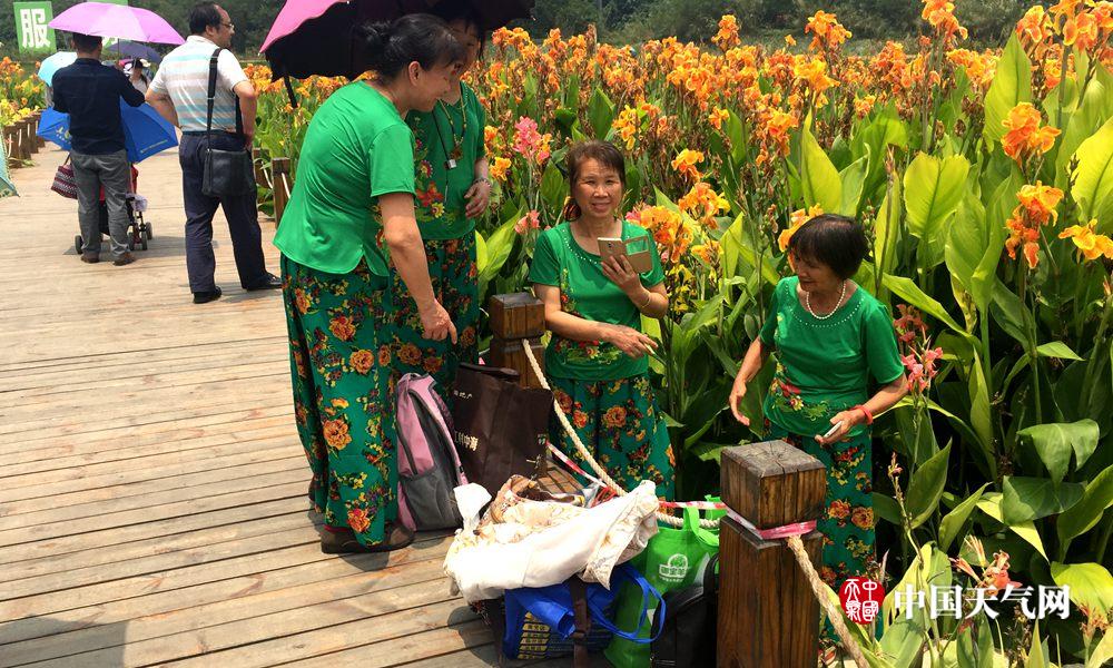 沿着木制的亲水步道,一片片色彩斑斓的美人蕉花海映入眼帘。(摄影:袁丽军)