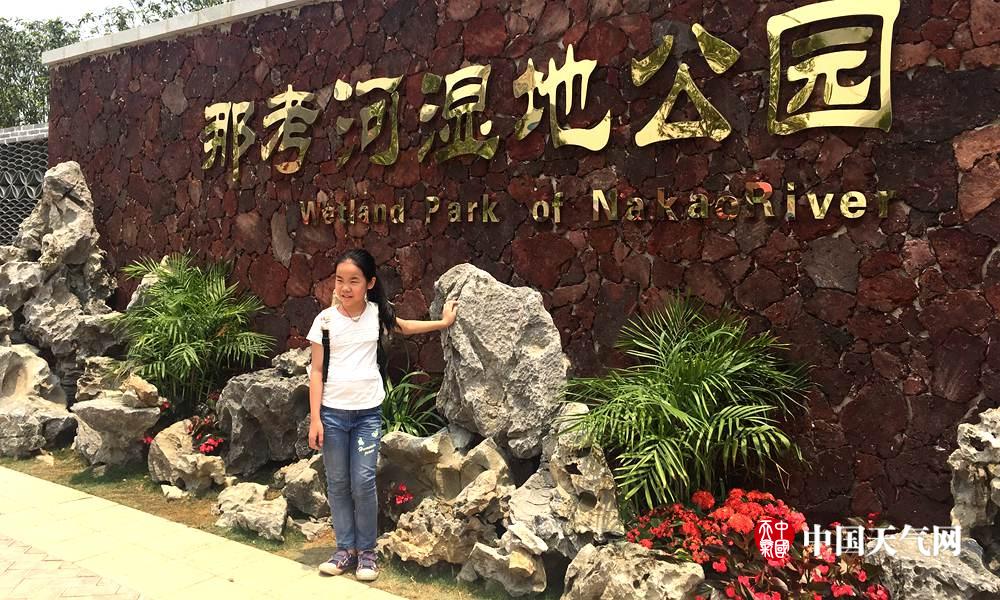 小朋友在湿地公园门口合影(摄影:袁丽军)