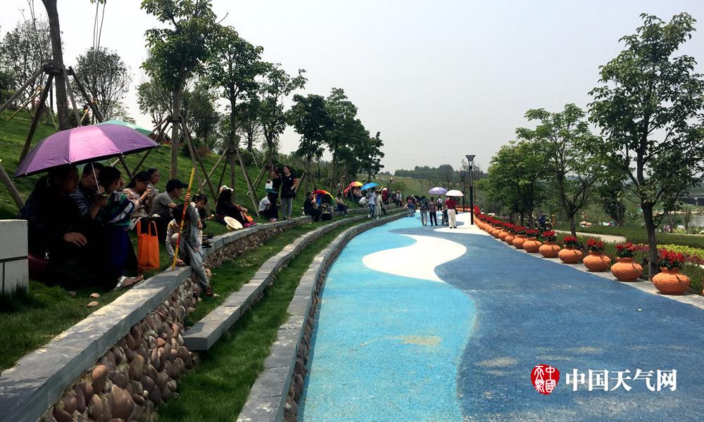 午后阳光强烈,游客打伞游玩。(摄影:袁丽军)
