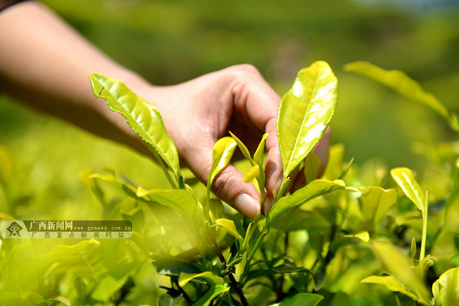 妇女同胞在展示采摘到的茶叶。(摄影:潘志祥)