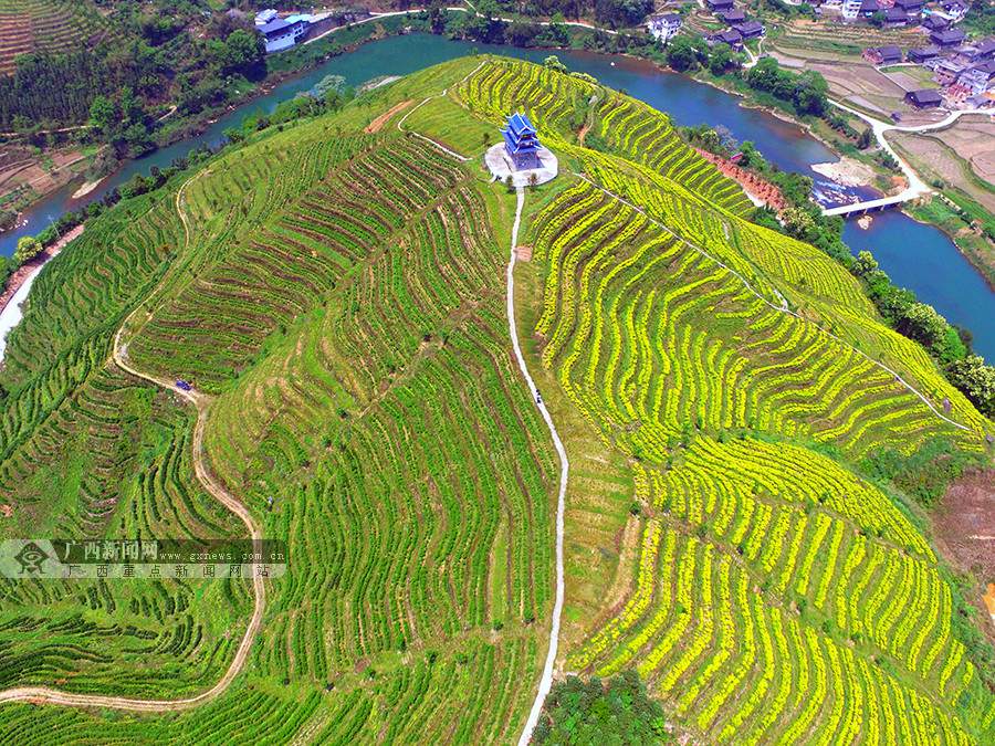 航拍龙胜各族自治县乐江乡梦龙生态茶园美景。(摄影:潘志祥)