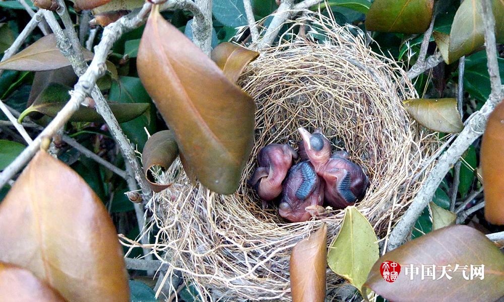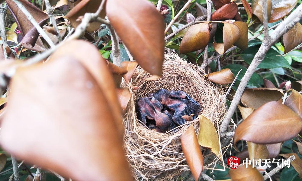 雏鸟在巢中待母归(摄影:詹莹玉)