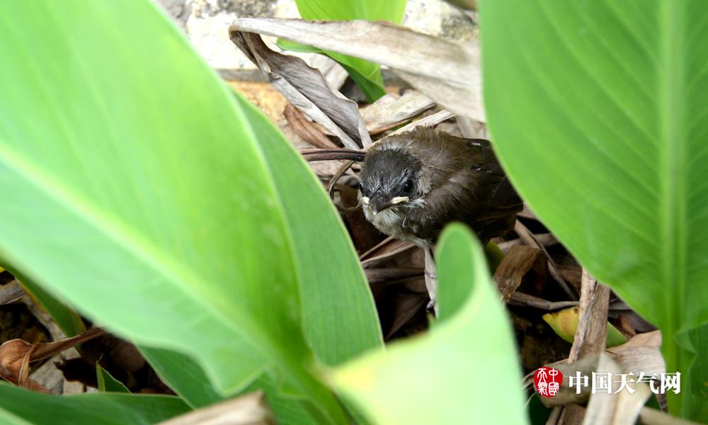 羽翼仍不够丰满,只能躲在花丛中的雏鸟(摄影:詹莹玉)