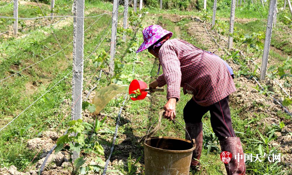 果农正在施水肥