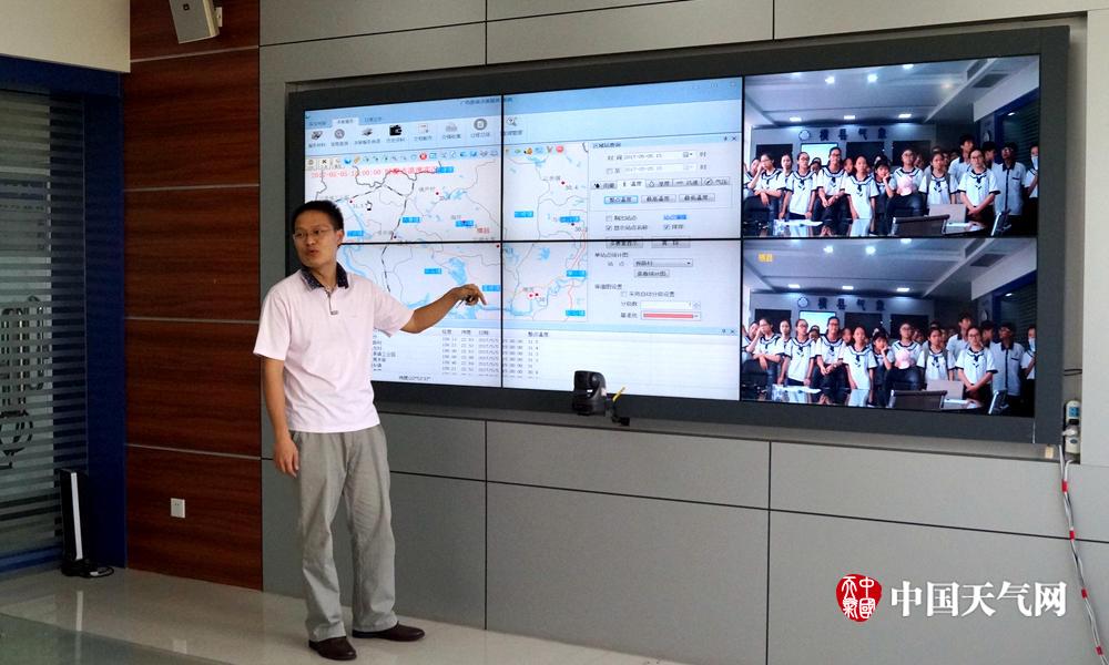 气象工作人员讲解百叶箱(摄影:蔡云)