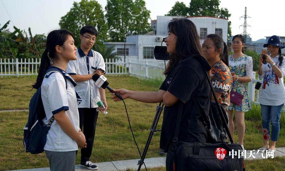 学生正在接受横县电视台现场采访(摄影:蔡云)