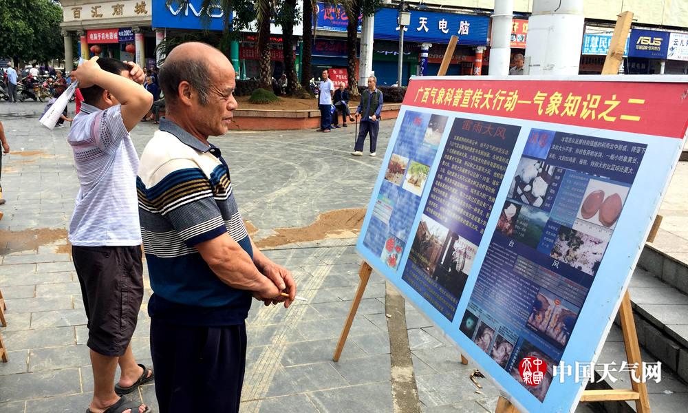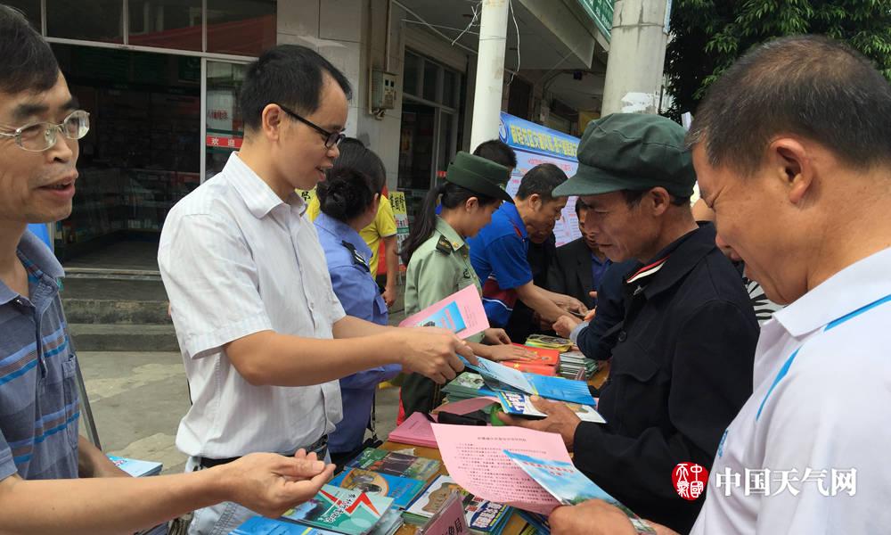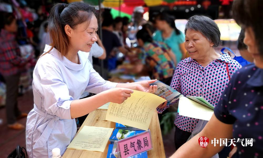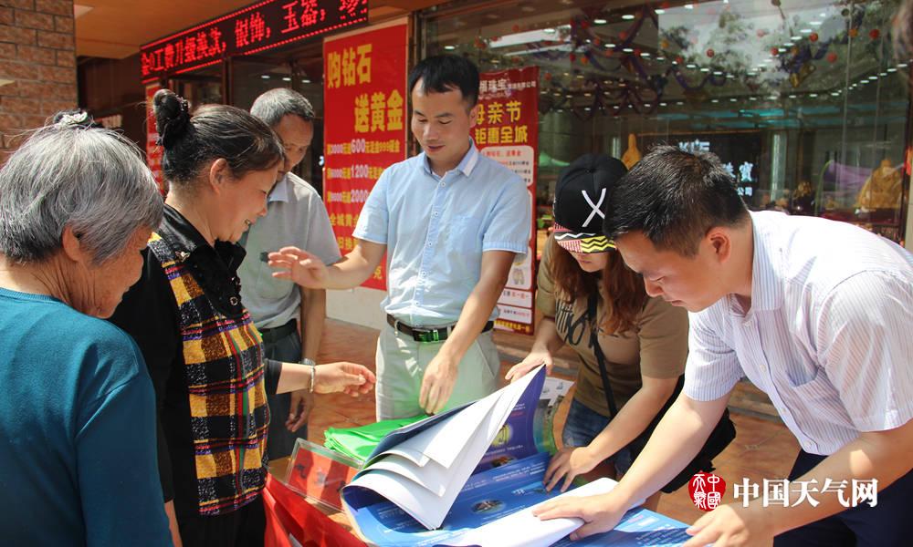 田东气象局工作人员向市民发放宣传单并认真讲解气象科普知识(摄影:戴雨菡)