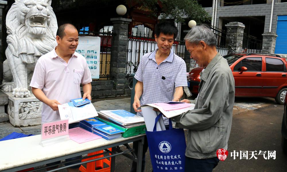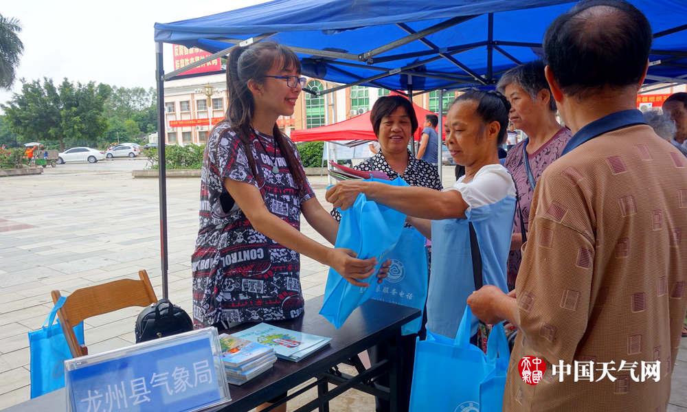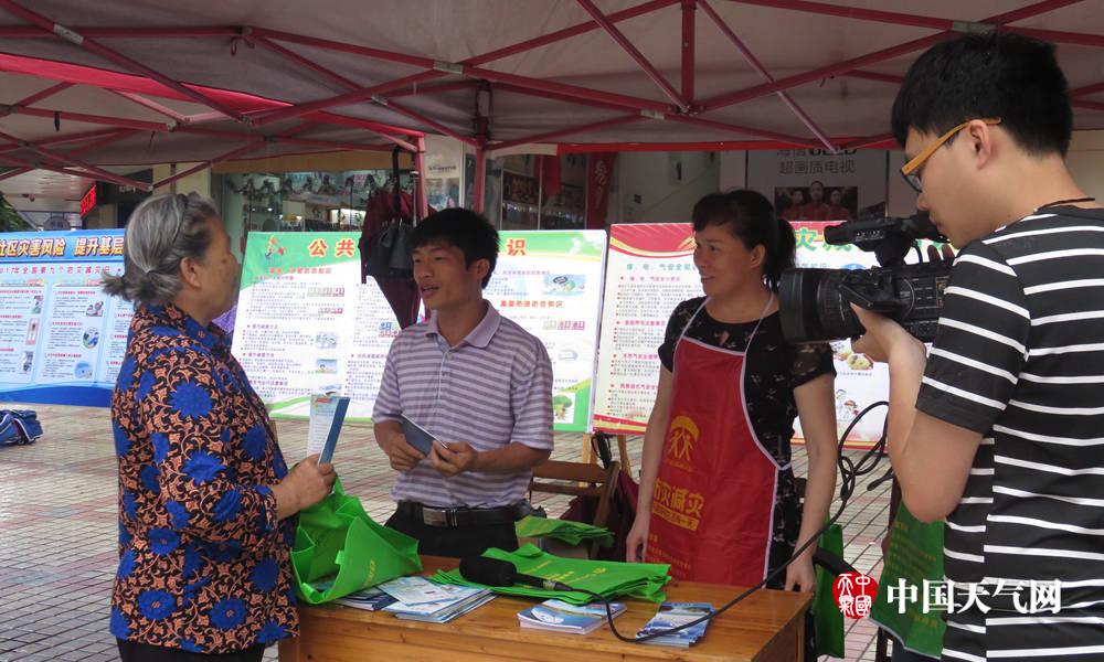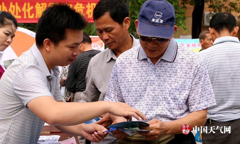 活动现场,龙州县气象局布置了气象防灾减灾科普知识展板,工作人员围绕“减轻社区灾害风险,提升基层减灾能力”主题,向市民们发放《气象灾害防御与安全手册》、《气候变化与气候安全手册》等宣传资料,以现场讲解方式,就如何科学合理的应对高温、雷电、暴雨、台风等灾害进行了科普。(文/吕善行)图为工作人员向市民发放气象宣传手册(摄影:许秀同)