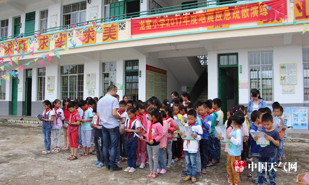 象州县气象局组织科普人员到象州镇龙富小学进行气象科普宣传,向小学生讲解了本县常出现的主要气象灾害性天气,传授了预防和应对气象灾害等科普知识。此次科普宣传,现场共发放宣传资料100多份。(文/涂燕清)图为科普人员在给学生们发放气象科普宣传资料。(摄影:涂燕清)