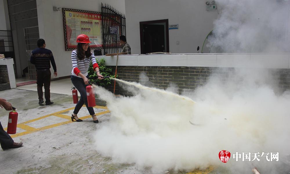 上午活动过程中,金秀气象局工作人员给小学生们上了一堂生动的气象科普宣传课,通过文字、图片和视频等方式让同学们了解气象灾害的成因、金秀县易出现的气象灾害及怎样在灾害发生时保护自己。下午,金秀县气象局组织职工开展了防灾减灾演练活动。演练的主要内容有火灾现场人员疏散、逃生、使用灭火器灭火等。活动过程中,同志们有序疏散,并积极参与了“灭火”行动,既加强了对灭火器使用方法的熟悉程度,也加强了同志们的火灾逃生意识,达到了预期的目的。(文/黄智)图为防灾演练现场。(摄影:黄路)