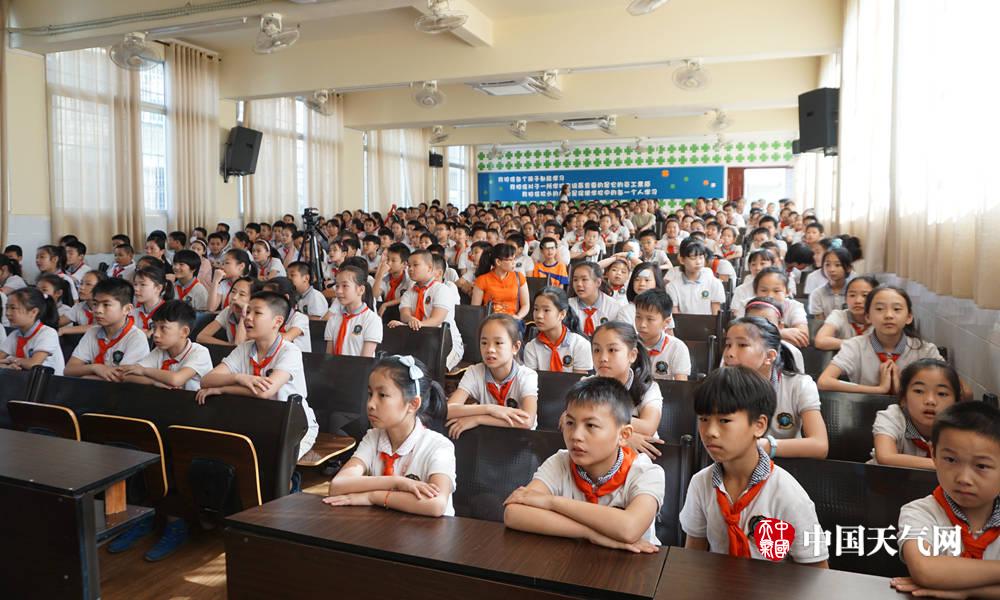 河池市气象局青年志愿者服务队走进金城江区第三小学举办气象防灾减灾科普报告会,从人与自然灾害、本地气象灾害种类、天气预报预警制作、气象灾害防御指南等方面讲解气象知识和防灾减灾知识,并辅以科普视频介绍。现场共有300名学生观看,并通过学校视频系统面向全校近2000名师生直播。(文/何振伟)图为同学们在认真听报告。(摄影:何振伟)