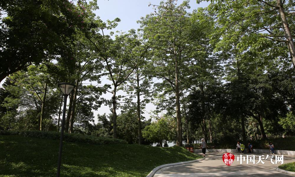 十几棵高大木棉树竞相萦绕,绿树成荫(摄影:韦坚)