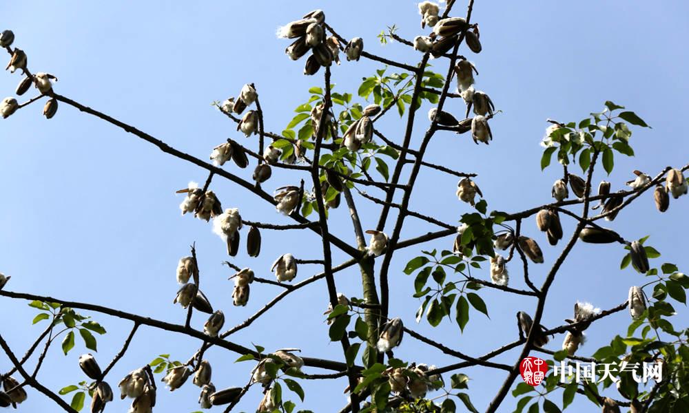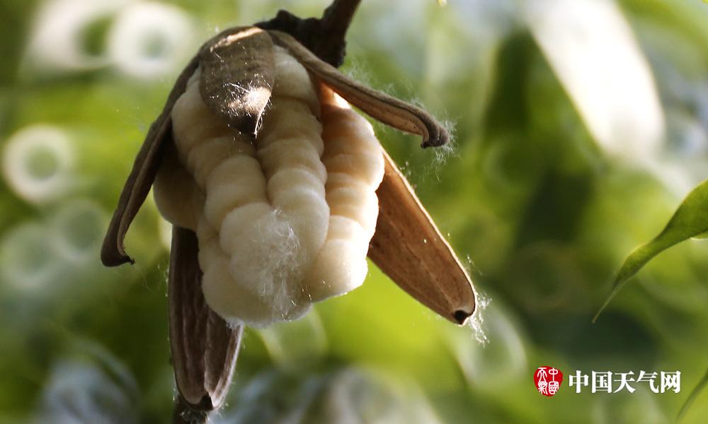 现在变成白绿配,绿叶伴着雪白的棉絮(摄影:韦坚)