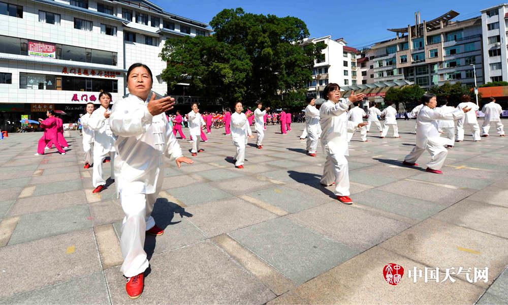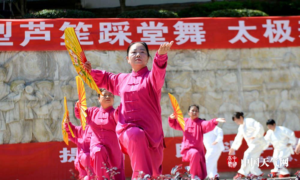 太极爱好者在表演太极操(摄影:黄勇丹)
