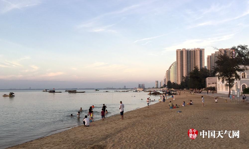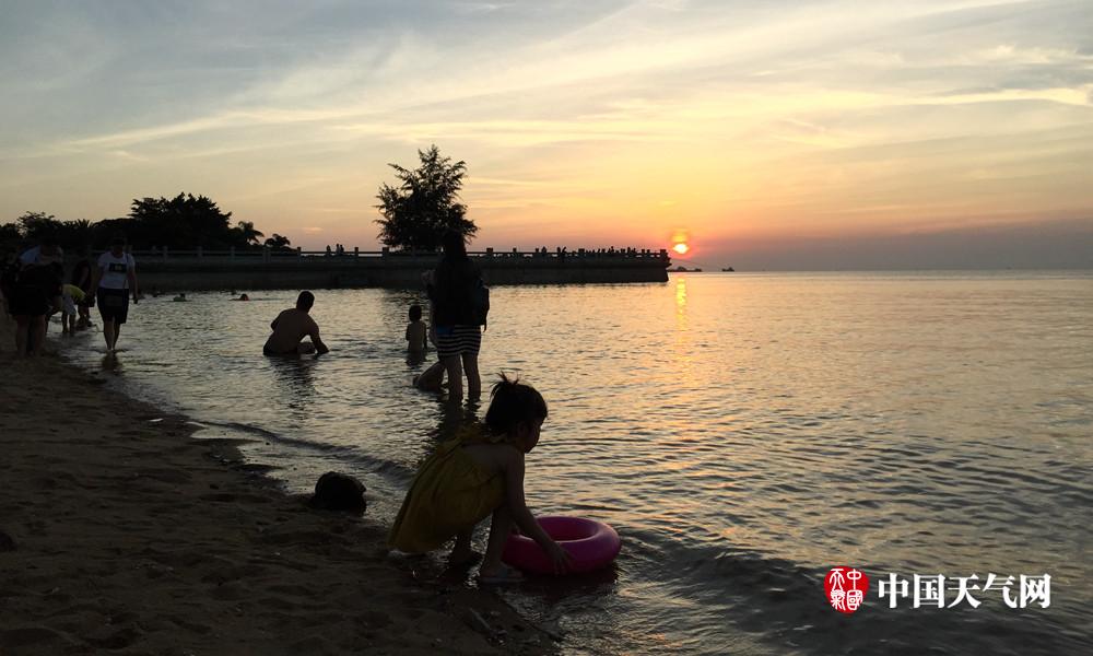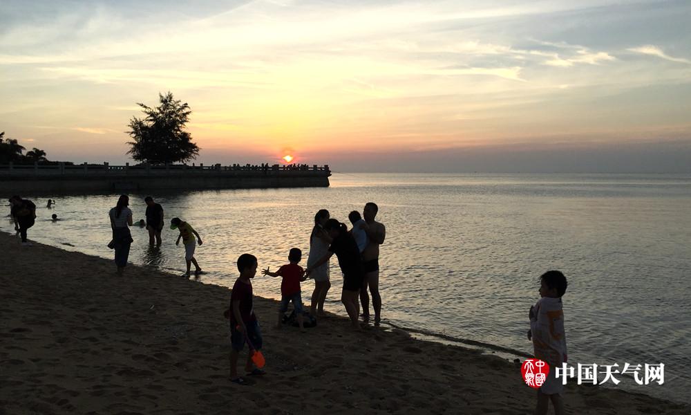 傍晚时分还有许多人在海边玩耍。(摄影:卢威旭)