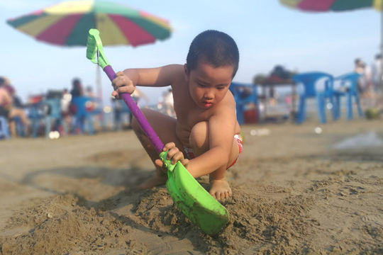 人们在海滩上嬉戏游玩,享受轻松假期。(摄影:卢威旭)