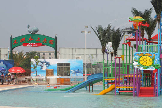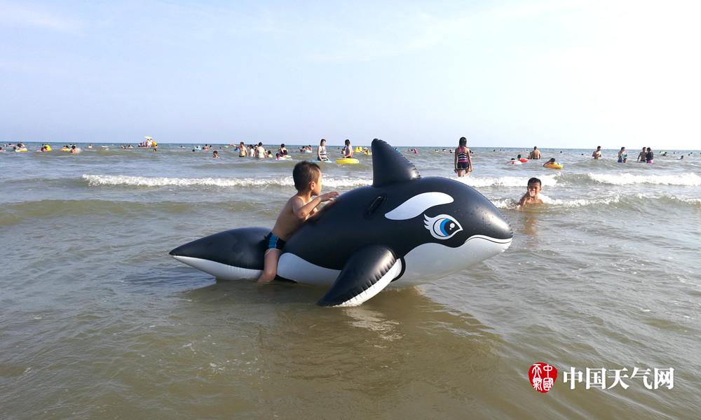 骑着玩偶戏水的小游客(摄影:唐昌秀)
