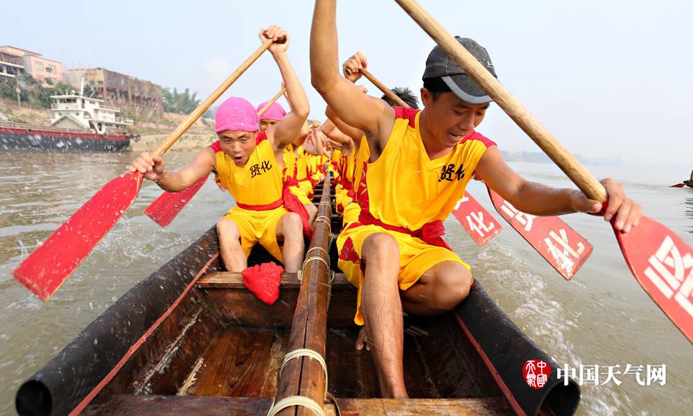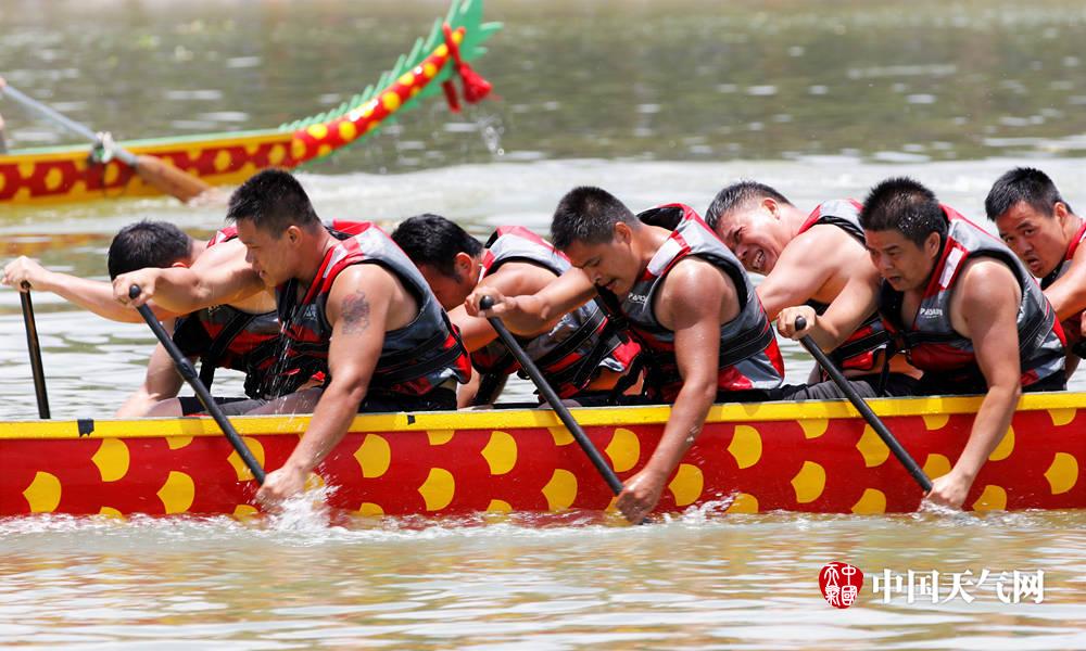 顶着烈日奋力划桨的运动健儿(摄影:李新华)