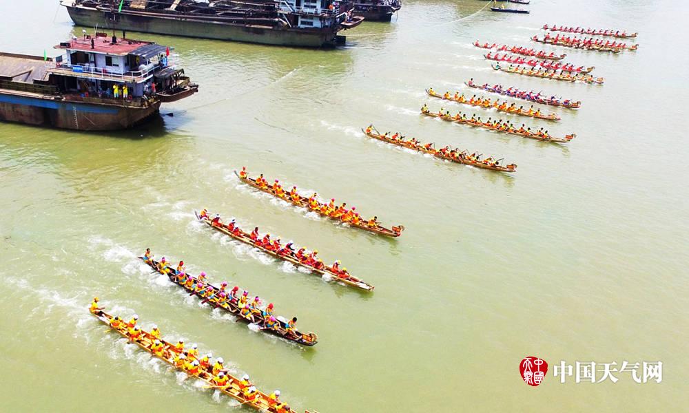 端午贵港烈日炎炎,龙舟大赛激情展开(摄影:李新华)