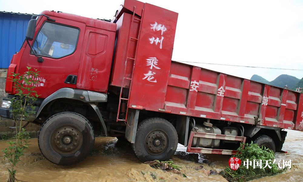 大卡车在洪水中“失重”(摄影:黄立强)