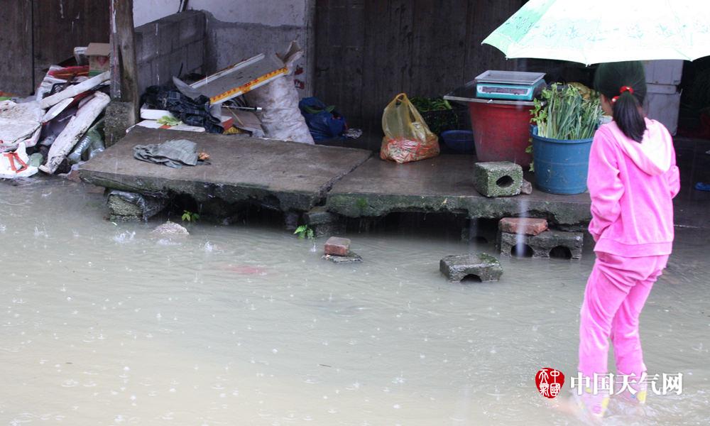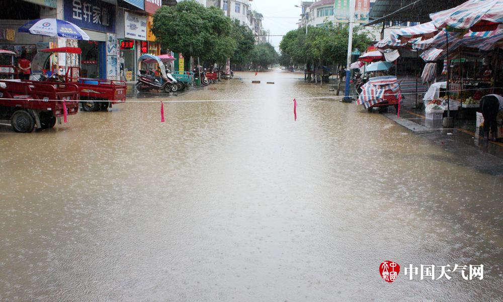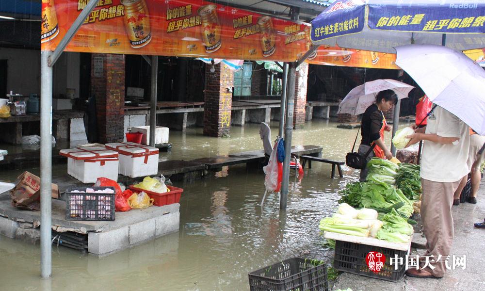 宜州:乡镇买卖摊点积水严重(摄影:陆德旺)