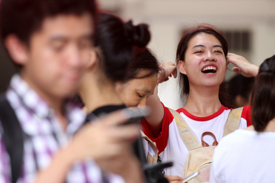 学生走过街道举步维艰。