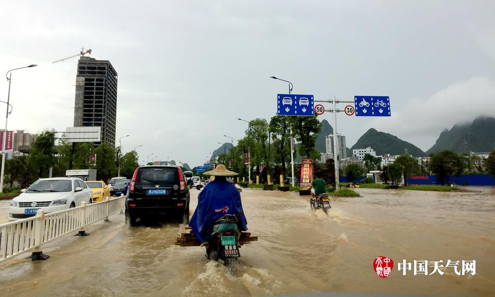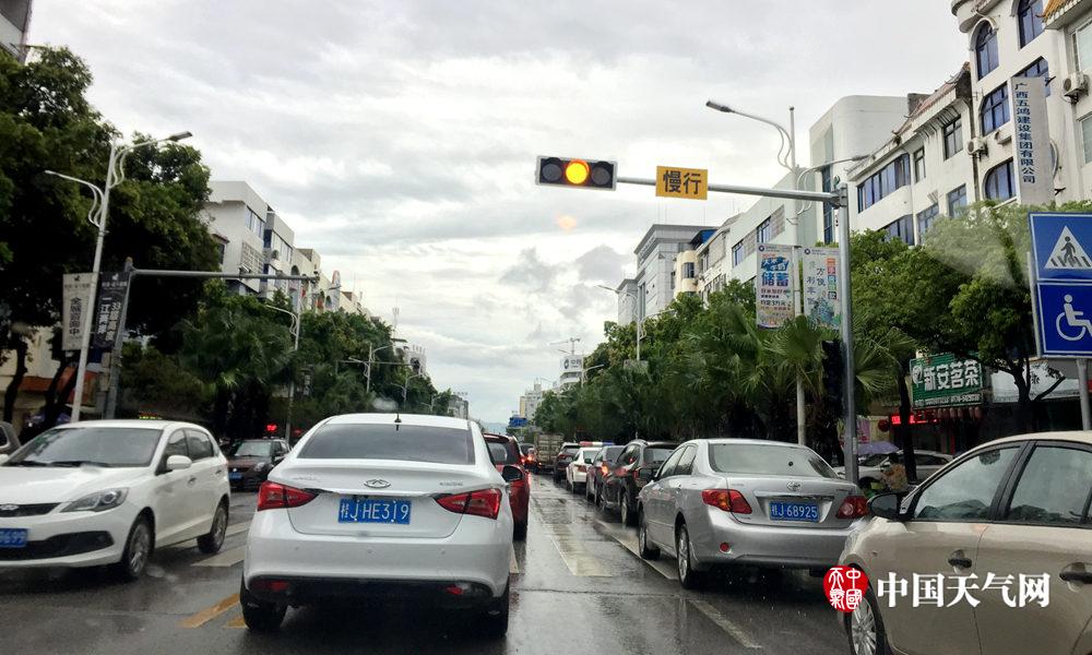 贺州午后遭强对流天气,红绿灯疑被雷劈断线路(摄影:黄远盼)