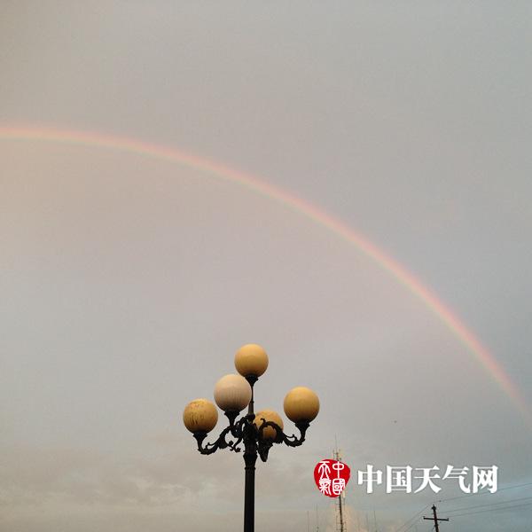贵港气象观测场上空悬挂彩虹,色彩对比明显。(摄影:叶小婷)