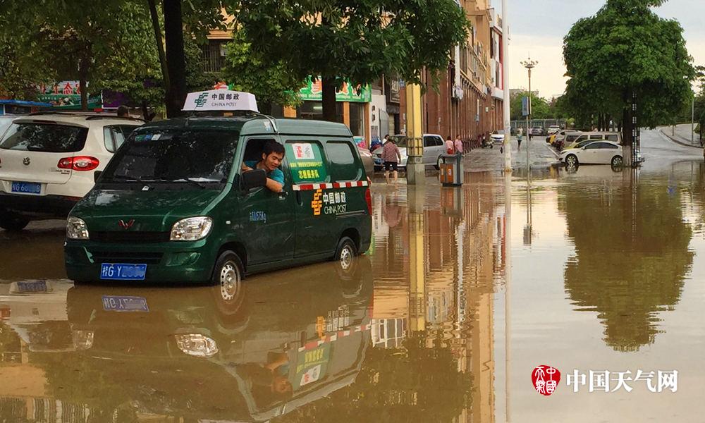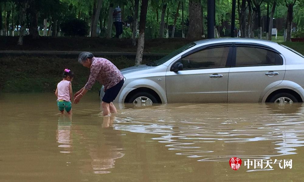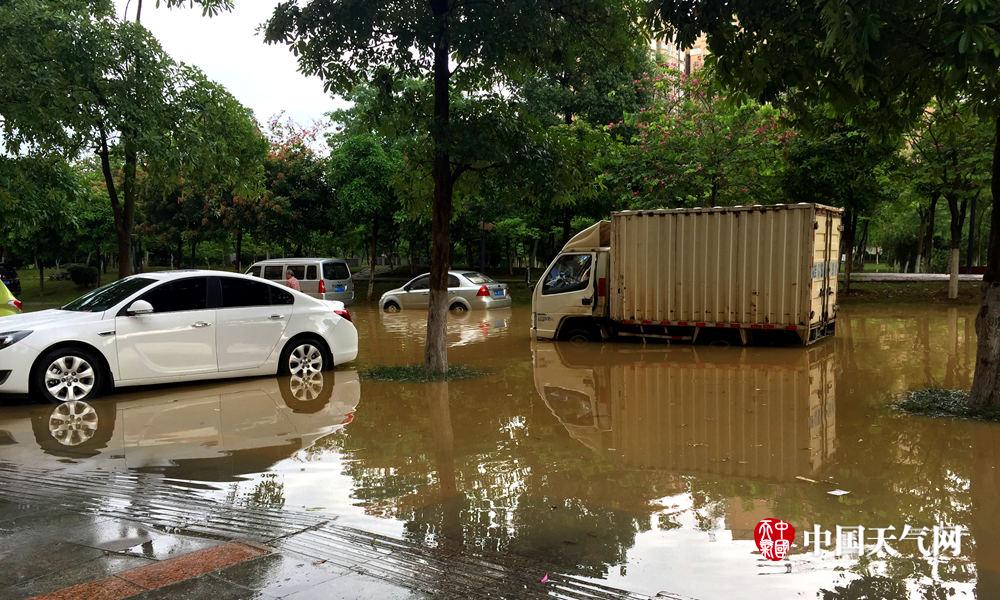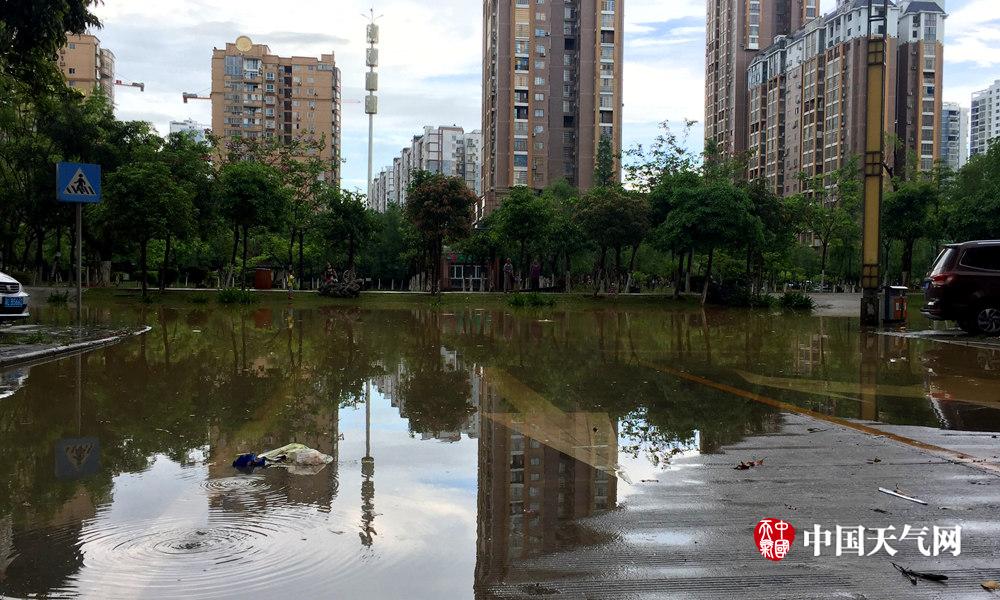 强降水影响,城区部分道路积水。(摄影:苏庆红)
