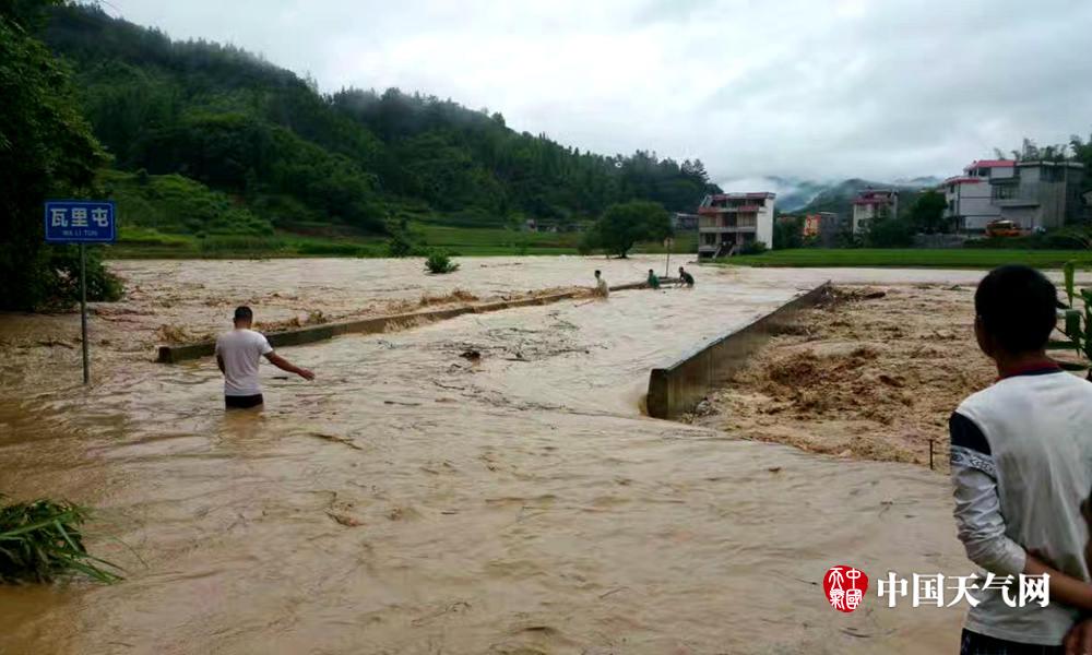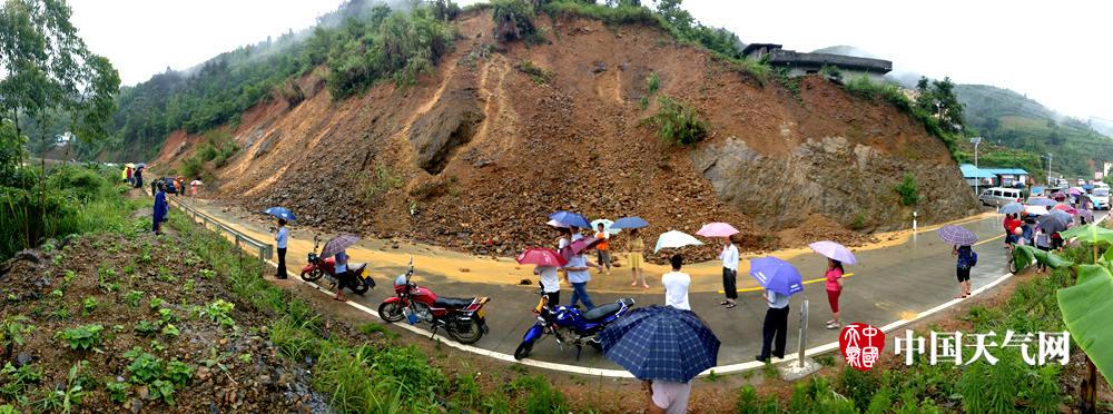 强降雨造成道路塌方(摄影:谭花妹)