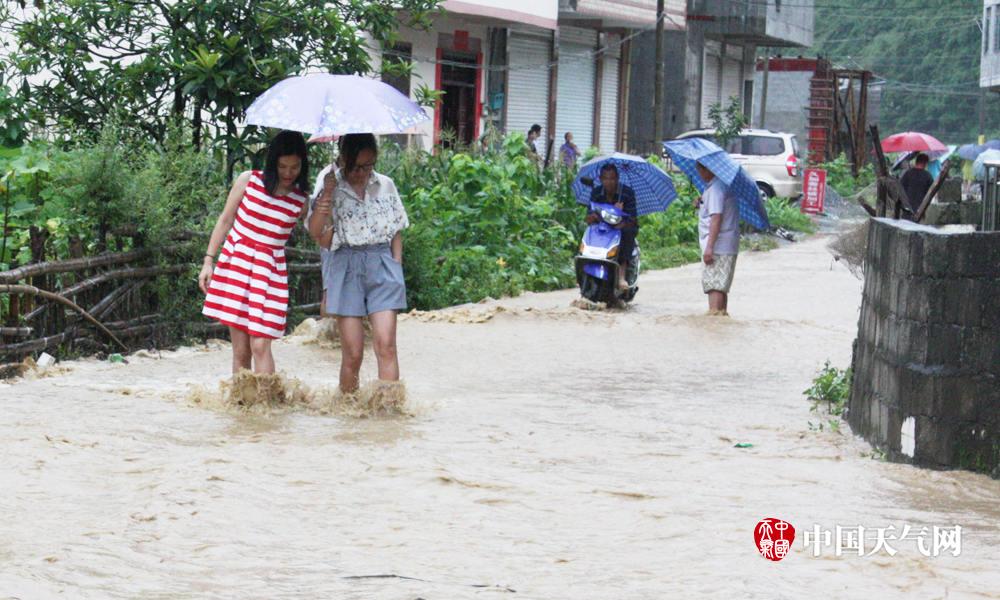 洪水漫过路面,行走困难(摄影:谭花妹)