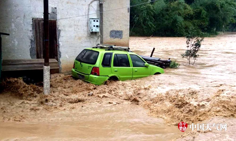 乔音乡久加村小车被洪水冲走(摄影:班世富)