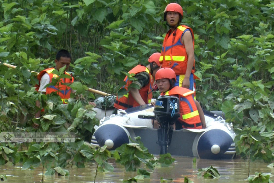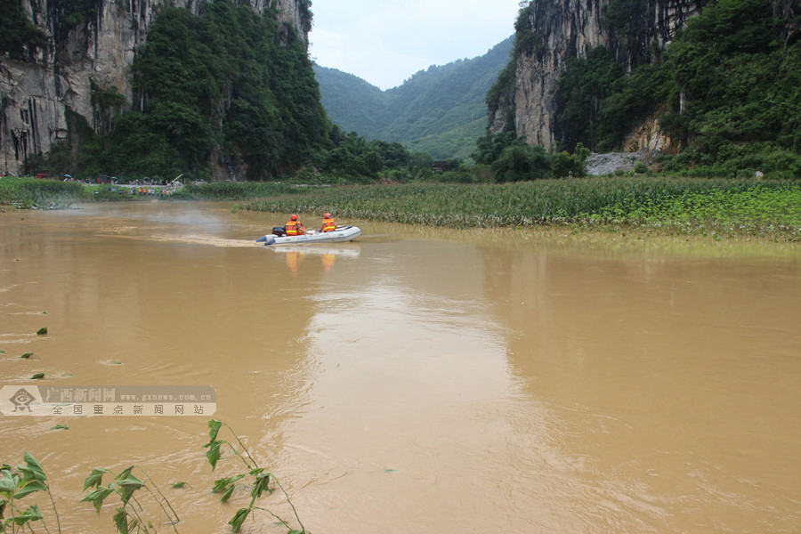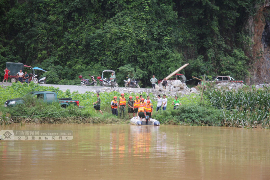 消防官兵乘坐橡皮艇靠近被困人员。广西新闻网通讯员 李苑君 罗青麟 供图