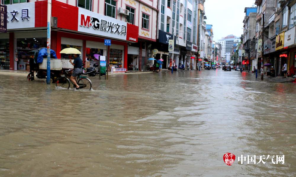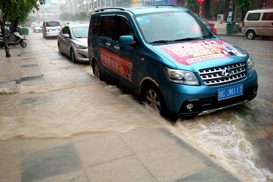 城中路面积水似一片汪洋(摄影:李平)