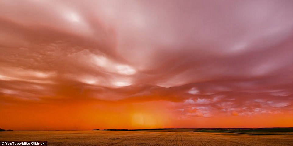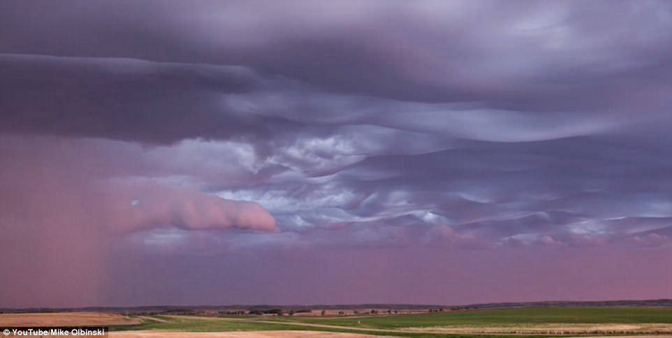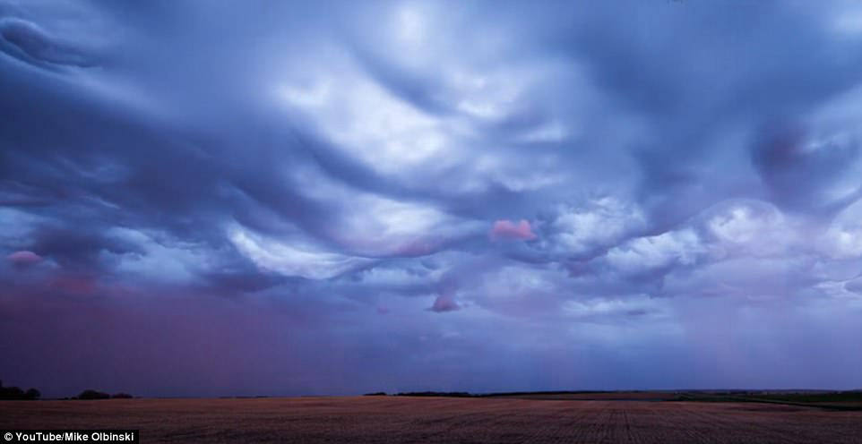 这组镜头展现的是世界气象组织近期公布的一种新型云,这种云十分罕见,需要大片冷凝水蒸气聚集才能形成云层似波涛汹涌的景象。奥宾斯基表示这是他在八年拍摄极端天气生涯里看到的最为惊艳的场景之一。当时他就像孩子来到糖果店一样兴奋异常,为了找到最佳拍摄角度不停地跑来跑去。
