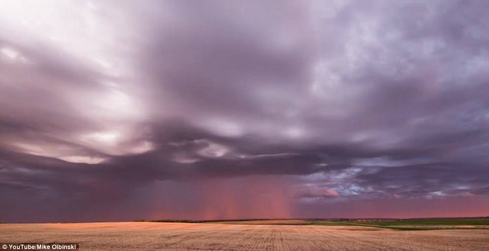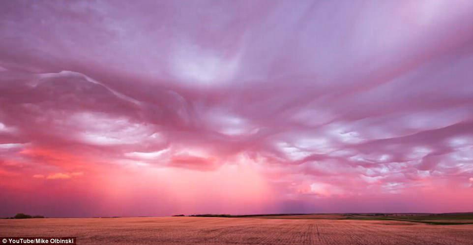 美国风暴追逐者迈克•奥宾斯基(Mike Olbinski)在傍晚驱车穿越北达科他州时拍到了如梦如幻的一幕:落日余晖渲染整片天空,金色、粉色、紫色交织在一起,仿佛置身仙境。