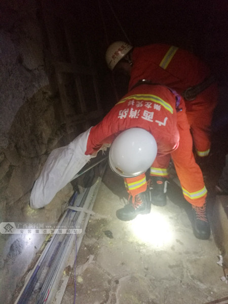 消防官兵“追捕”长度约3米的大蛇。凭祥市消防中队供图