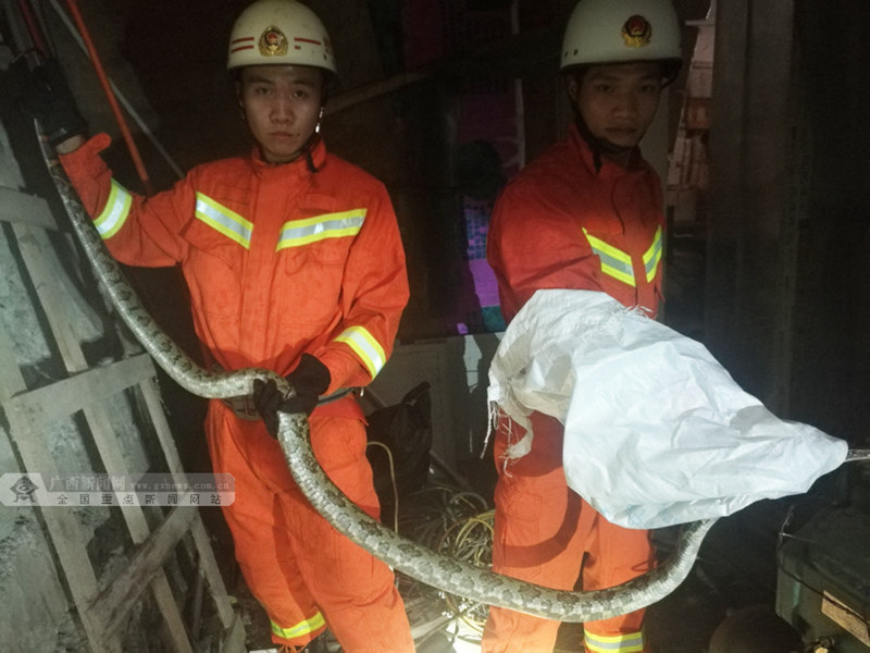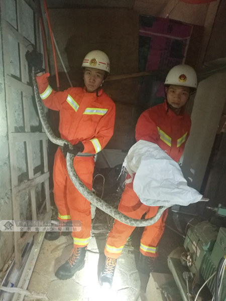 消防官兵成功抓获扰民大蛇。凭祥市消防中队供图