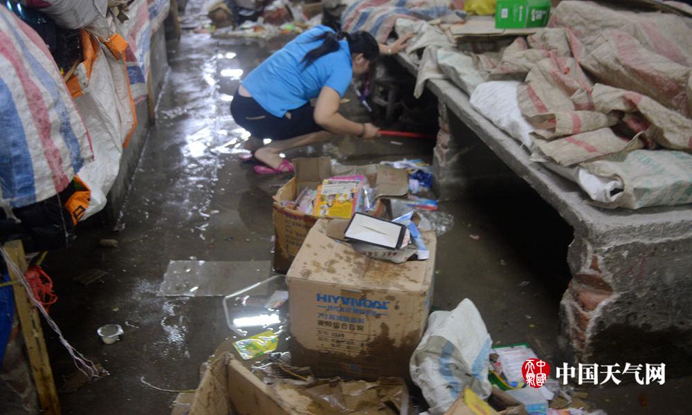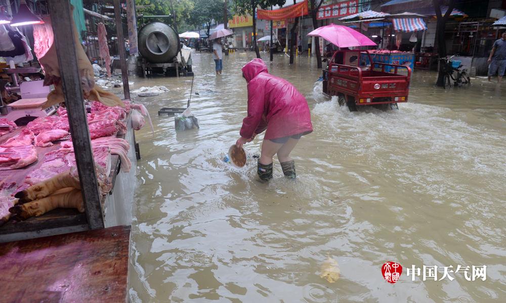 市场商户商品被泡(摄影:刘国平)