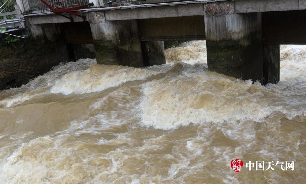 双胜河三闸齐开水势依然汹涌(摄影:刘国平)
