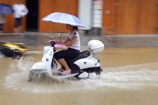 榕蝶路积水成河(摄影:刘国平)